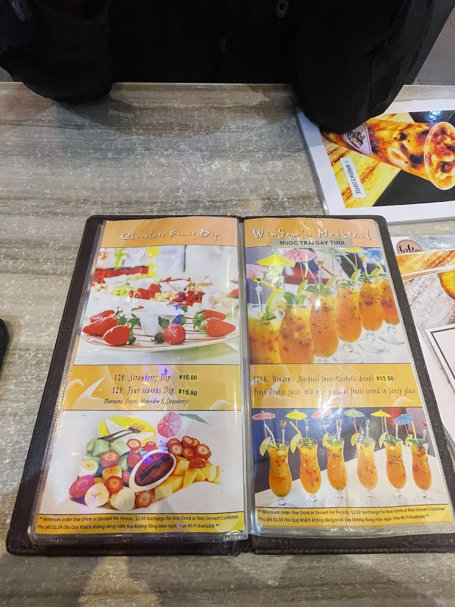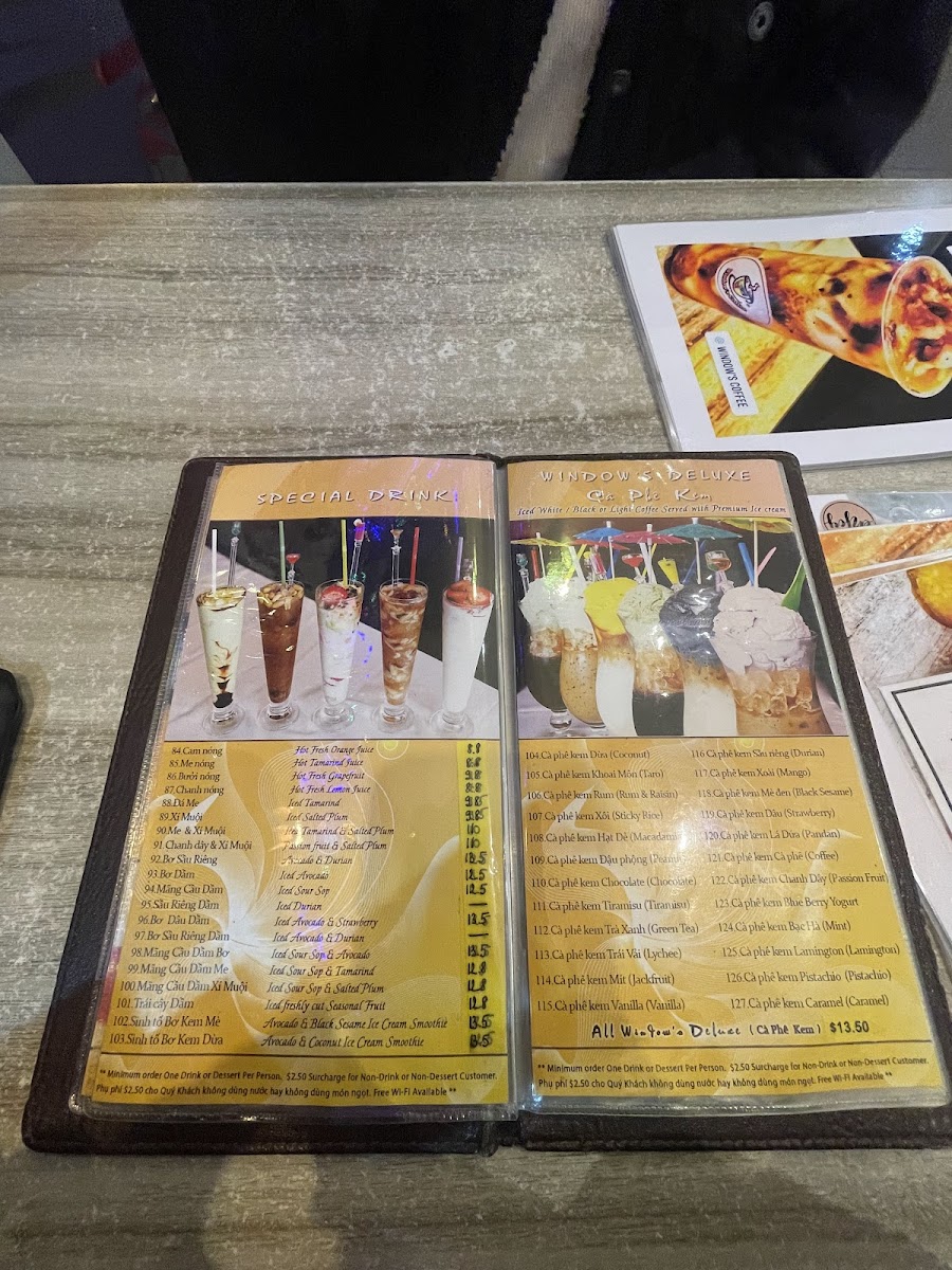 At Window's Coffee, the menu is an inviting mix of sweet and refreshing treats that cater to both the adventurous palate and the casual dessert lover. Step away from the ordinary and embrace the extraordinary with their unique offerings like the Sữa Chua Đường Đen Kem Xoài (Iced yogurt with black sugar and mango ice cream) at just A$19.00, or the ever-popular VANILLA Milk Shake priced at A$10.00. If you're in the mood for something cozy, the Toasted Banana Bread With Butter for A$6.80 will warm your heart and satisfy your cravings!