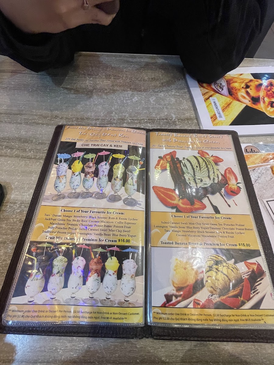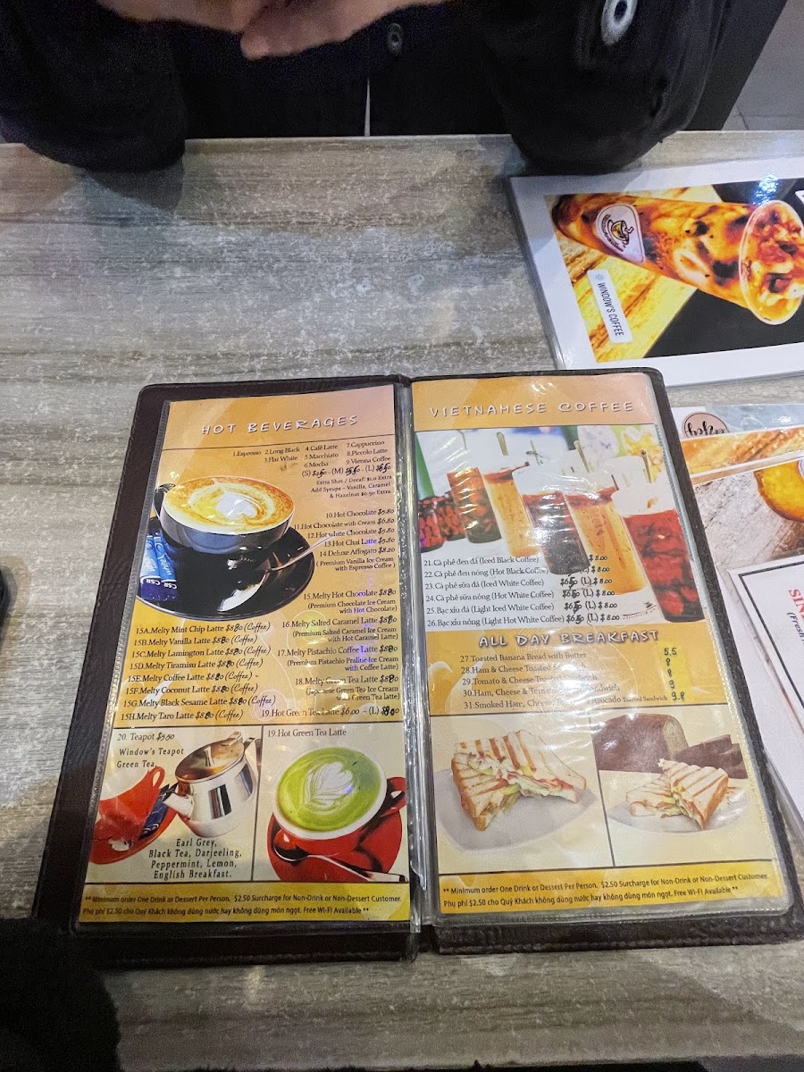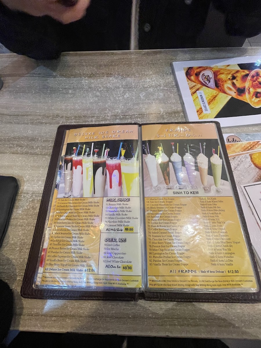 And don't miss out on their delightful selection of smoothies, especially the SINH TỐ BƠ DỪA CÀ PHÊ (Fresh Avocado, Coconut & Coffee Smoothie) for A$15.00— a perfect blend of creamy textures and bold flavors. With a vast range of gelato flavors like Biscoff and Lamington, it's no wonder customers rave about the variety available.